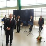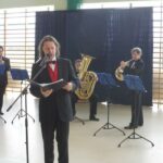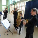 W dniu dzisiejszym /26 kwietnia br./ na zaproszenie władz Gminy Boniewo w tutejszej hali sportowej odbył się koncert muzyki patriotycznej “Witaj majowa Jutrzenko” w wykonaniu “Capelli Zamku Rydzyńskiego”. Z okazji nadchodzących świąt majowych w tym m.in “3 maja – Święta Konstytucji” zespół wykonał utwory patriotyczne i wojskowe. Dźwięki instrumentów dętych Capelli oraz piękne wykonania pieśni przez solistę stworzyło niepowtarzalny klimat święta muzyki. Warto podkreślić, że Capella Zamku Rydzyńskiego jest w Polsce jedynym profesjonalnym zespołem grającym na naturalnych instrumentach dętych blaszanych. Mistrzowskie wykonania utworów muzycznych były przyjęte gromkimi brawami w tym szczególnie przez grupę uczniów tutejszego zespołu szkół dla których koncert był niezapomnianą lekcją muzyki.Capella Zamku Rydzyńskiego, Reprezentacyjny zespół Muzyki Myśliwskiej to kwintet Instrumentów Dętych Blaszanych – dwie trąbki, róg, puzon, tuba. Zespół powstał w