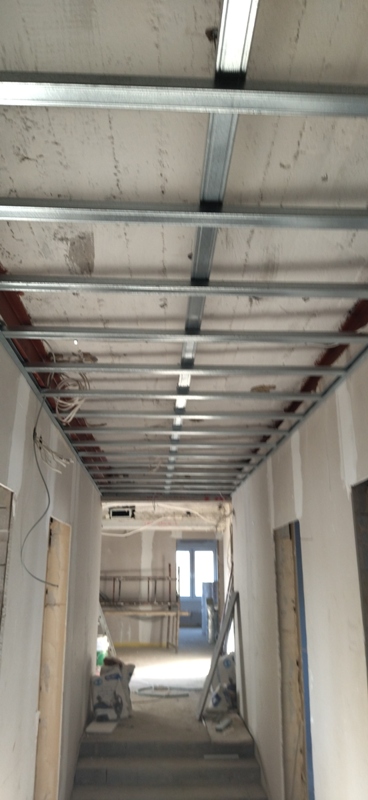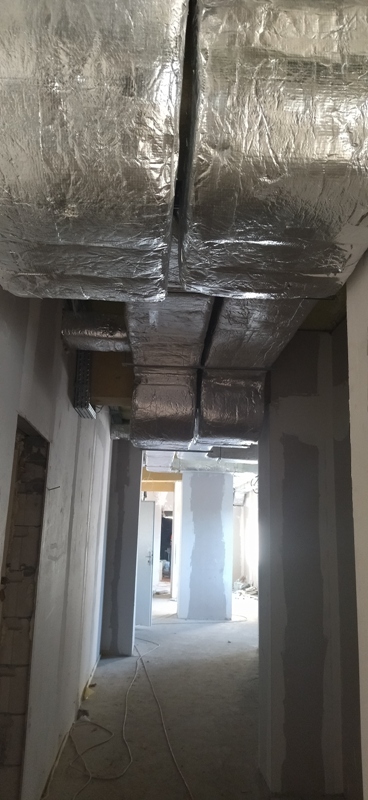Trwają prace remontowo-modernizacyjne budynku . Zdjęcia przedstawiają roboty z zakresu montażu schodów zewnętrznych, układania płytek na podłogach , roboty montażowe klimatyzacji .