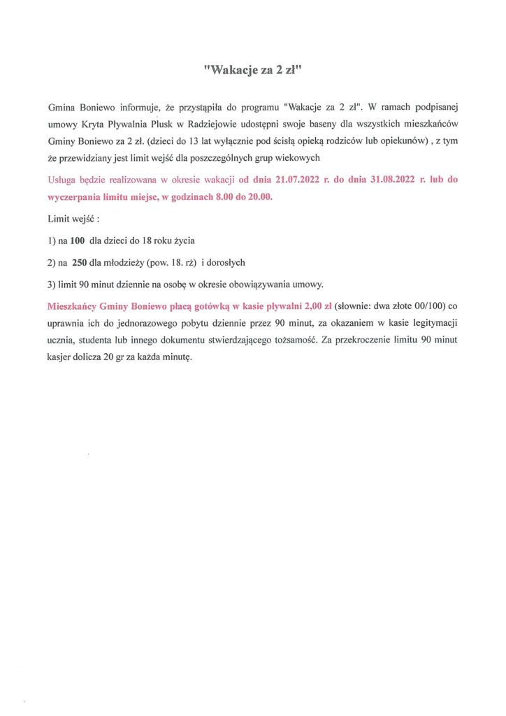 WAKACJE ZA 2 ZŁ