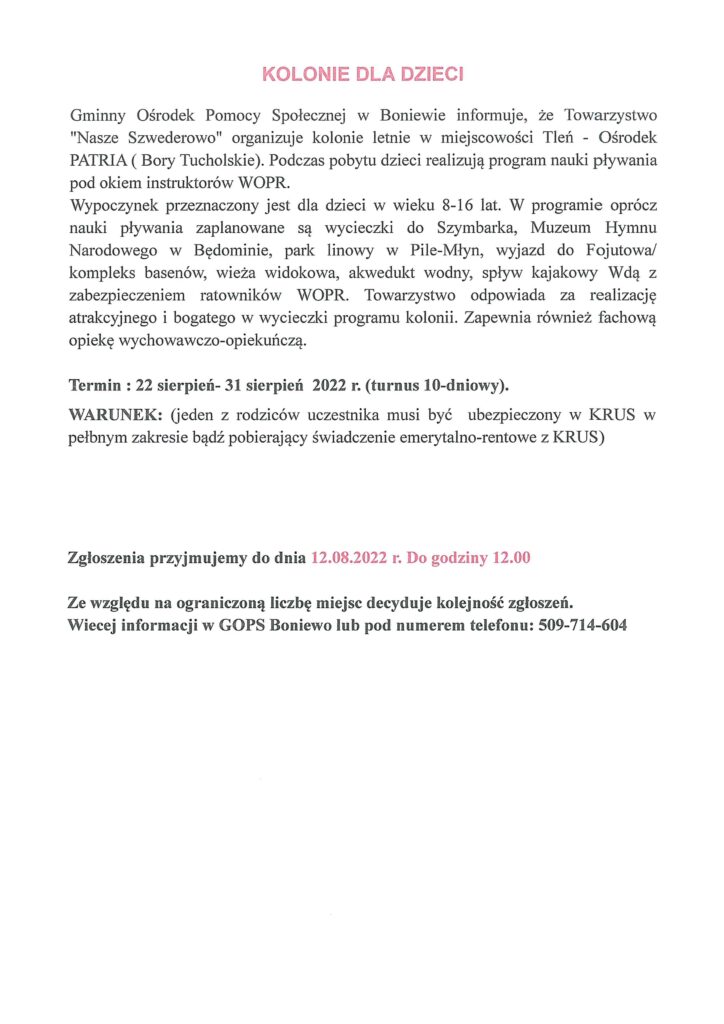 KOLONIE DLA DZIECI
