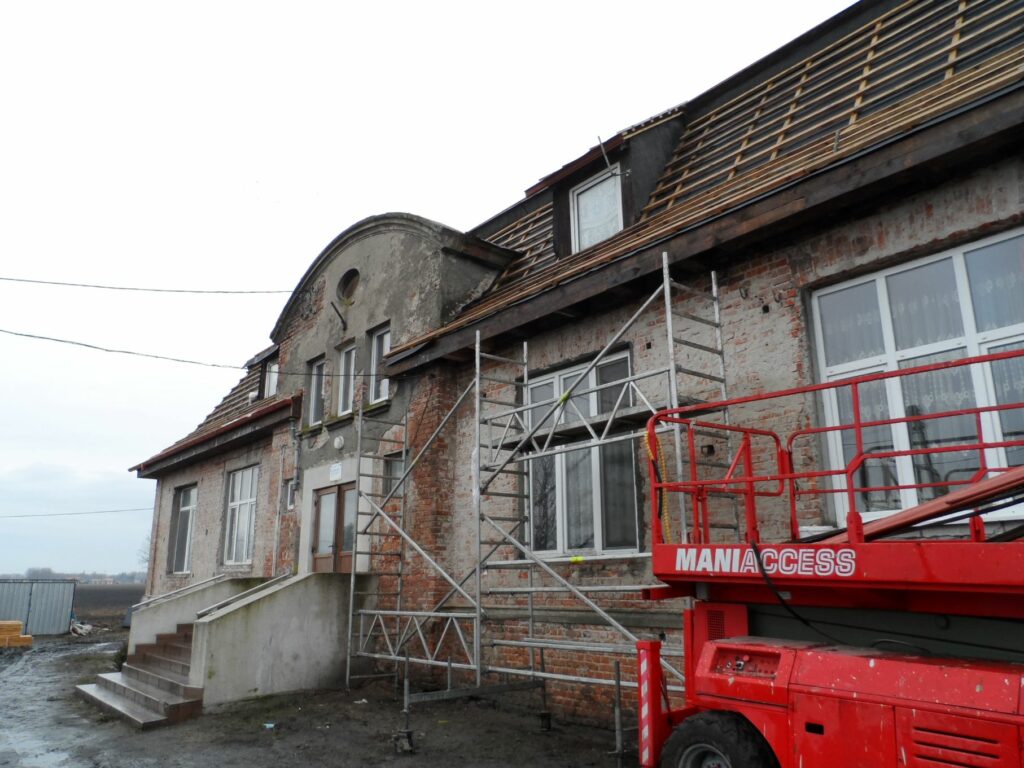 Rozpoczęły się roboty budowlane związane z wymianą dachów, naprawą kominów na budynkach komunalnych w miejscowości Kaniewo oraz Boniewo .