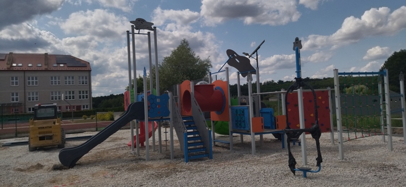 10 lipca 2023 Wykonawca montuje urządzenia placu zabaw – kolejny etap zbliża się do realizacji zadania
