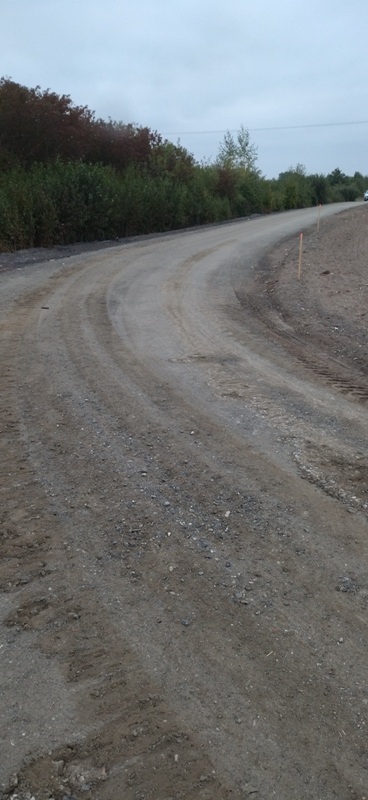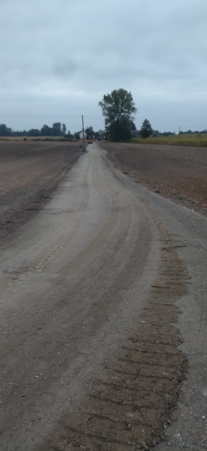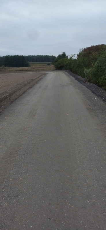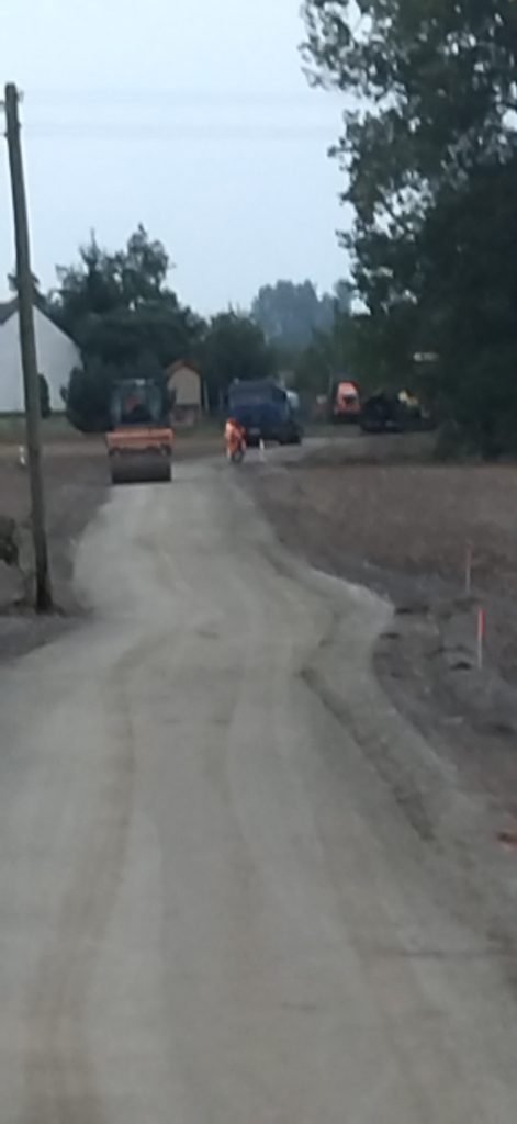 poniżej odcinek drogi w m. Lubomin Rządowy na którym wykonano podbudowę . Droga przygotowywana do pierwszej warstwy wiążącej .
