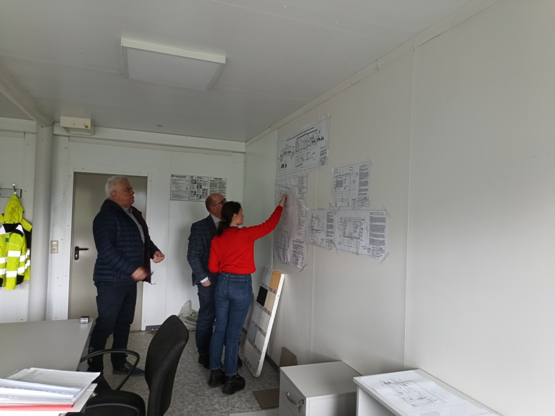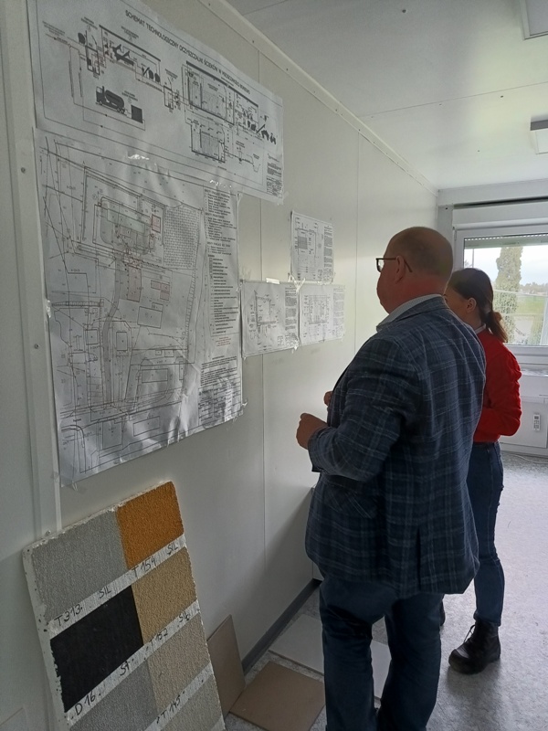 W dniu dzisiejszym kierownik budowy omówiła przedstawicielom Gminy aktualny stan zaawansowania robot oraz kolejne etapy robót budowlanych związanych z realizacją zadania