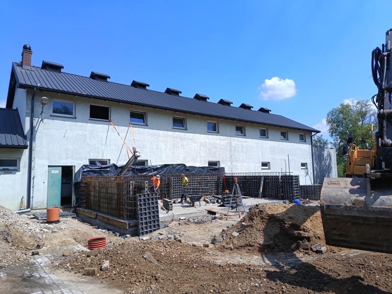 Aktualny stan robót w ramach zadnia . Roboty budowlane objęły budowę zbiornika na osad, budowę generatora oraz dalszy etap remontu pomieszczeń wewnętrznych budynku .