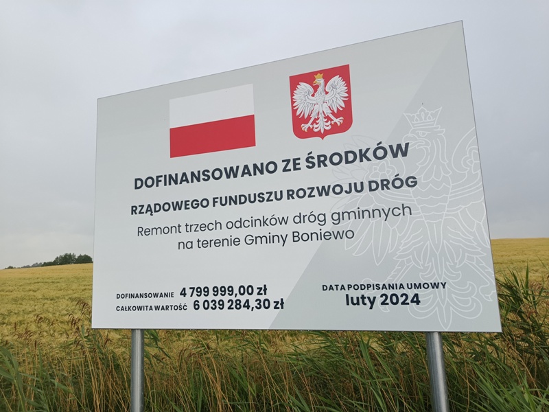 Aktualności, Inwestycja 2024.2 – Remont trzech odcinków dróg gminnych na terenie Gminy Boniewo, Inwestycje, Rządowy Fundusz Rozwoju Dróg