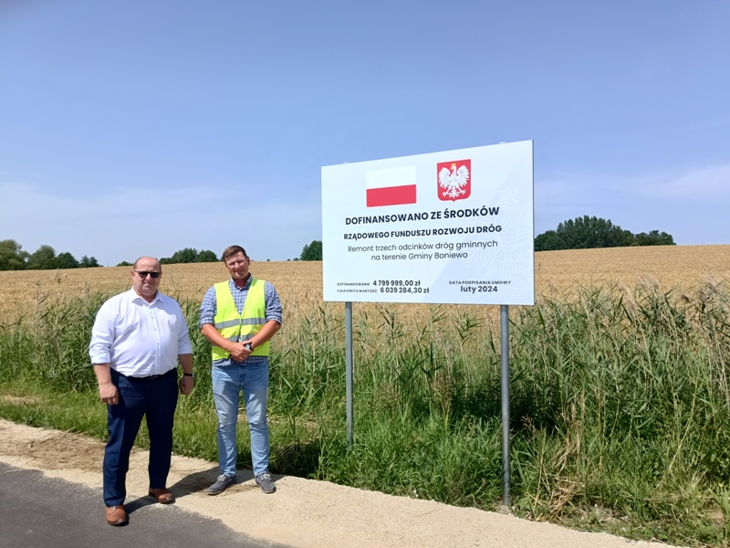 21 czerwca 2024 roku odebrano inwestycję pn. Remont trzech odcinków dróg gminnych na terenie Gminy Boniewo