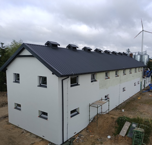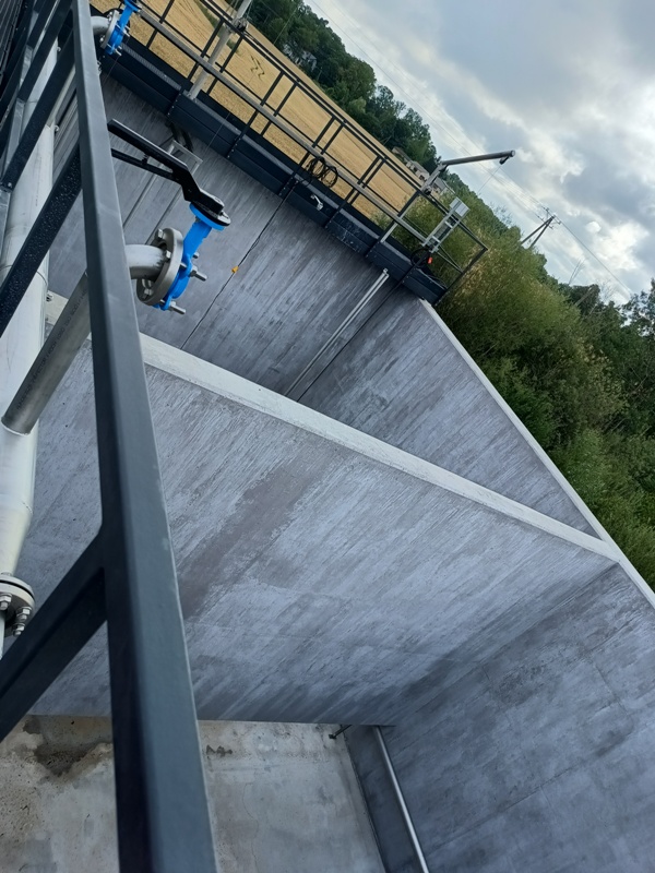 Aktualny stan robót w ramach zadnia . Roboty budowlane objęły budowę zbiornika na osad, sitopiaskownik, stację zlewczą oraz dalszy etap remontu pomieszczeń wewnętrznych budynku