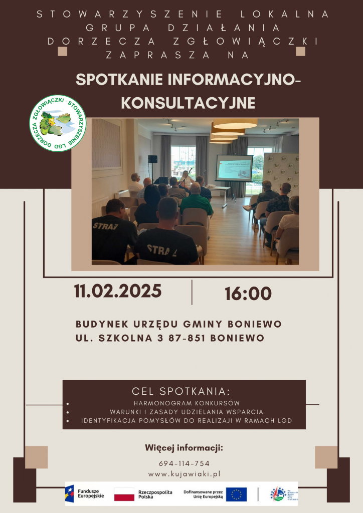 Stowarzyszenie Lokalna Grupa Działania Dorzecza Zgłowiączki zaprasza na spotkanie informacyjno-konsultacyjne mające na celu: