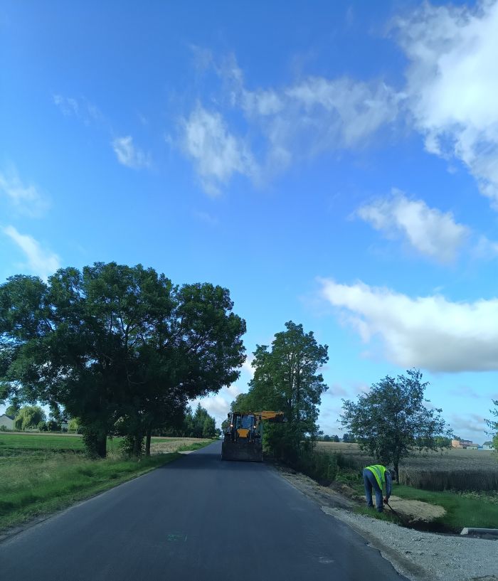Aktualnie trwają roboty związane z odwodnieniem drogi , zjazdami
