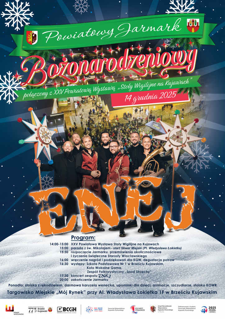 15:30 – Oficjalne rozpoczęcie jarmarku, przemówienia okolicznościowe i życzenia świąteczne Starosty Włocławskiego