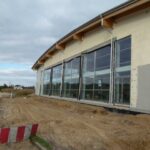Obiekt choć jeszcze niedokończony już się wyróżnia niebanalną, nowoczesną architekturą. Wzrok przyciągają przede wszystkim konstrukcja dachu oraz częściowo przeszklona elewacja.