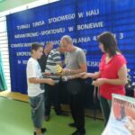 9:50 Prezes Stowarzyszenia Rozwoju Gminy Boniewo powitał uczestników turnieju i przekazał informację o zasobach przyrodniczych, kulturowych, historycznych i turystycznych gminy. Poinformował zebranych o konkursie zorganizowanym w Zespole Szkół w Boniewie pt. “Przyroda naszym przyjacielem”. Pracownik UG Boniewo Zdzisława Bywalska odczytała nazwiska wyróżnionych prac uczestników konkursu.